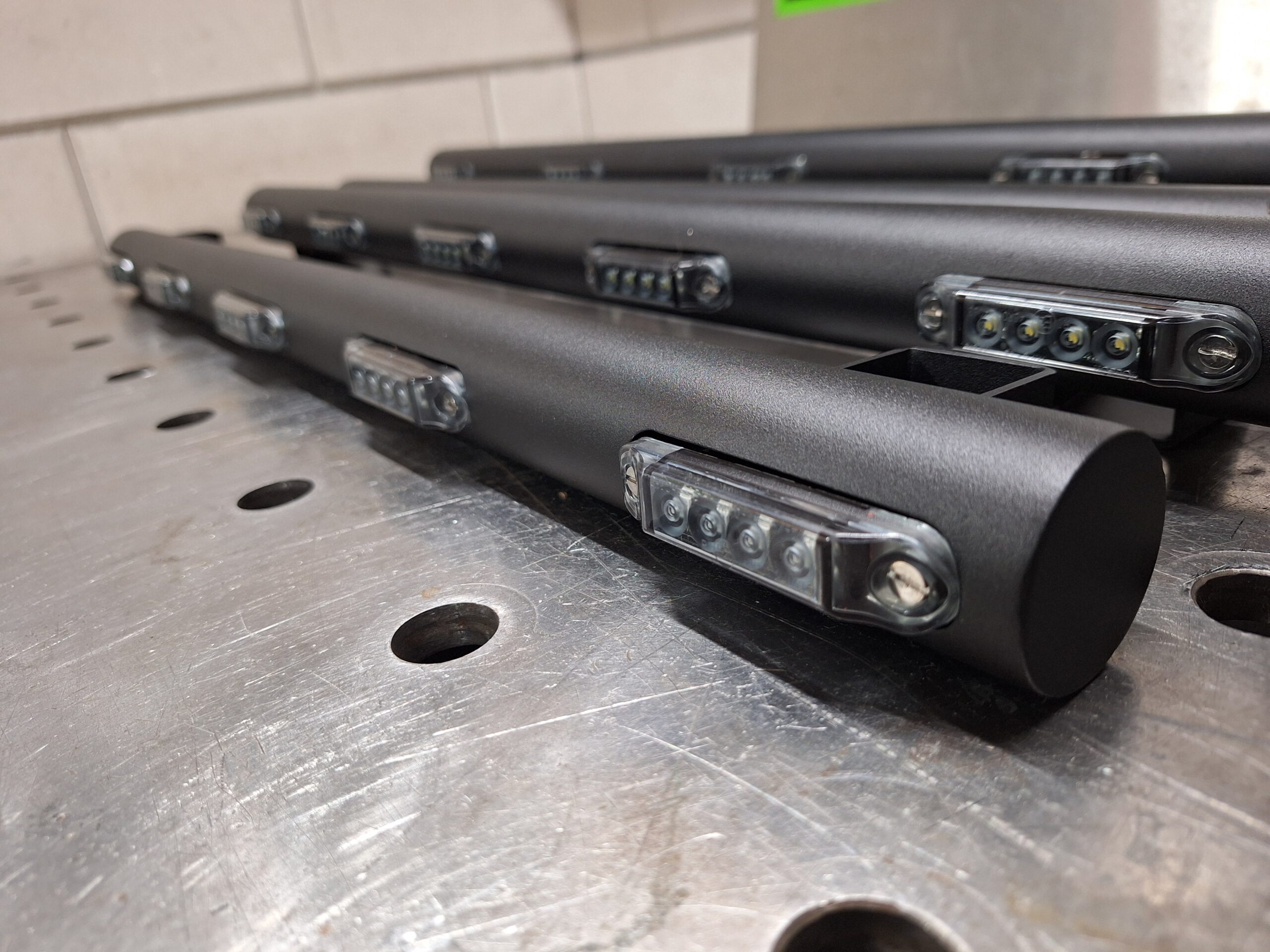 Ontdek onze hoogwaardige RVS Toplampbeugel van 65cm lang met 5 krachtige led lampjes. uitgevoerd in onze –Shadowline– uitvoering! gemokede led lampen in een strakke zwart gepoedercoate beugel met fijnstructuur.
